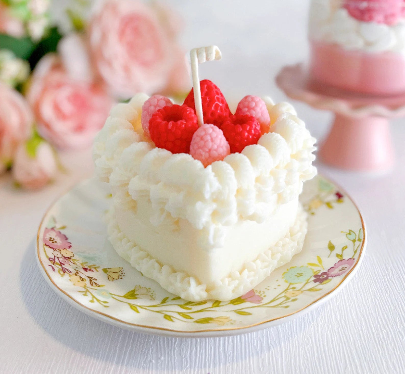 Designed to look like a slice of berry-topped cake, this handcrafted candle is both a visual treat and a fragrant delight. Each candle is uniquely made, with sweet wild berry notes and a cake-like pillar soy wax base.