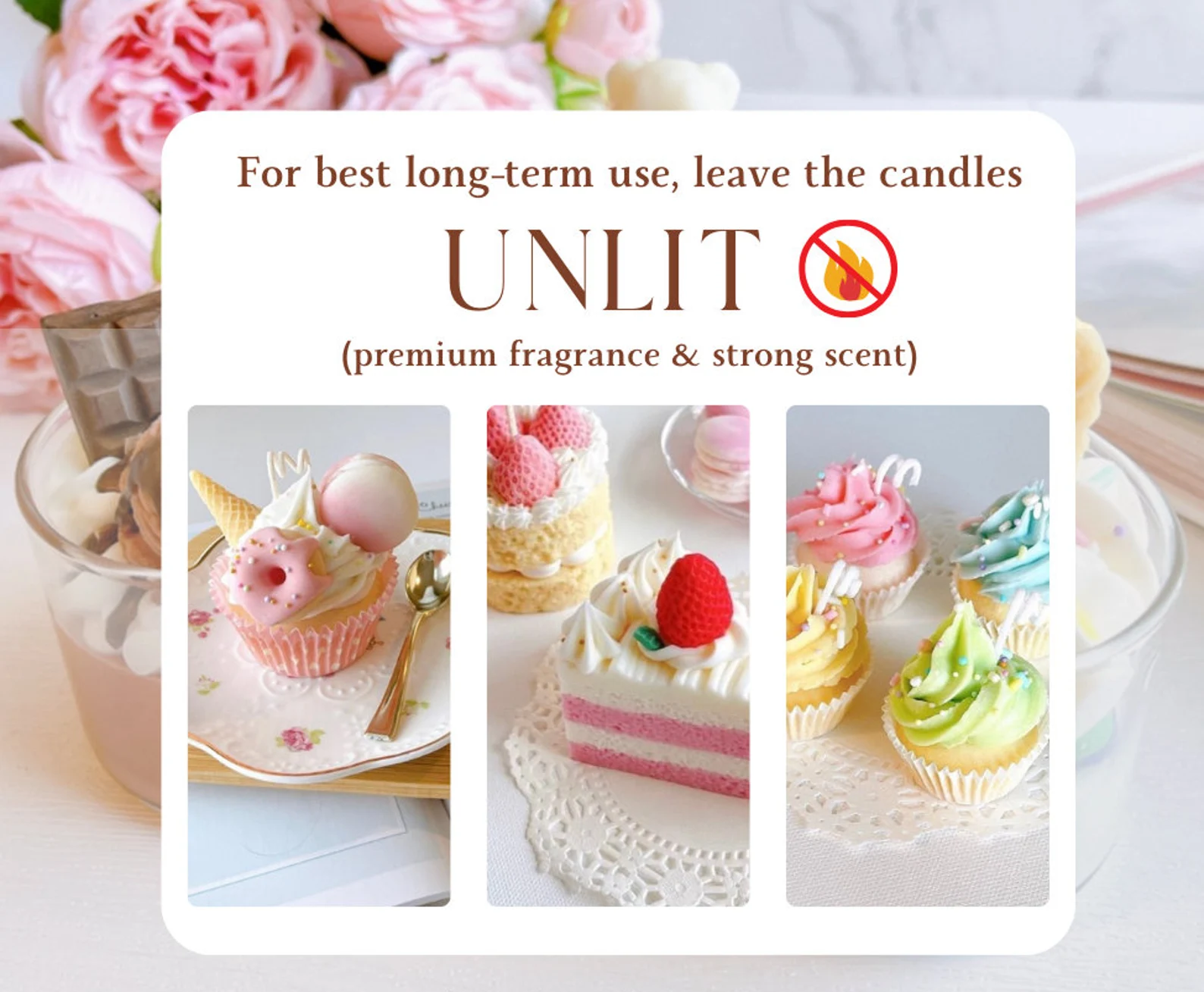 This realistic candle looks like an adorable strawberry cake—complete with strawberry embed toppings. Each piece is individually handcrafted to create a visually striking, sweet-scented decor item.